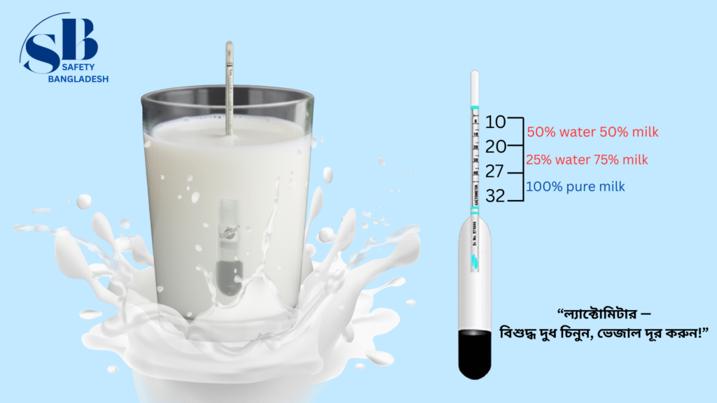 ল্যাকটোমিটারটি দুধে ডুবান এবং রিডিং লক্ষ করুন।
